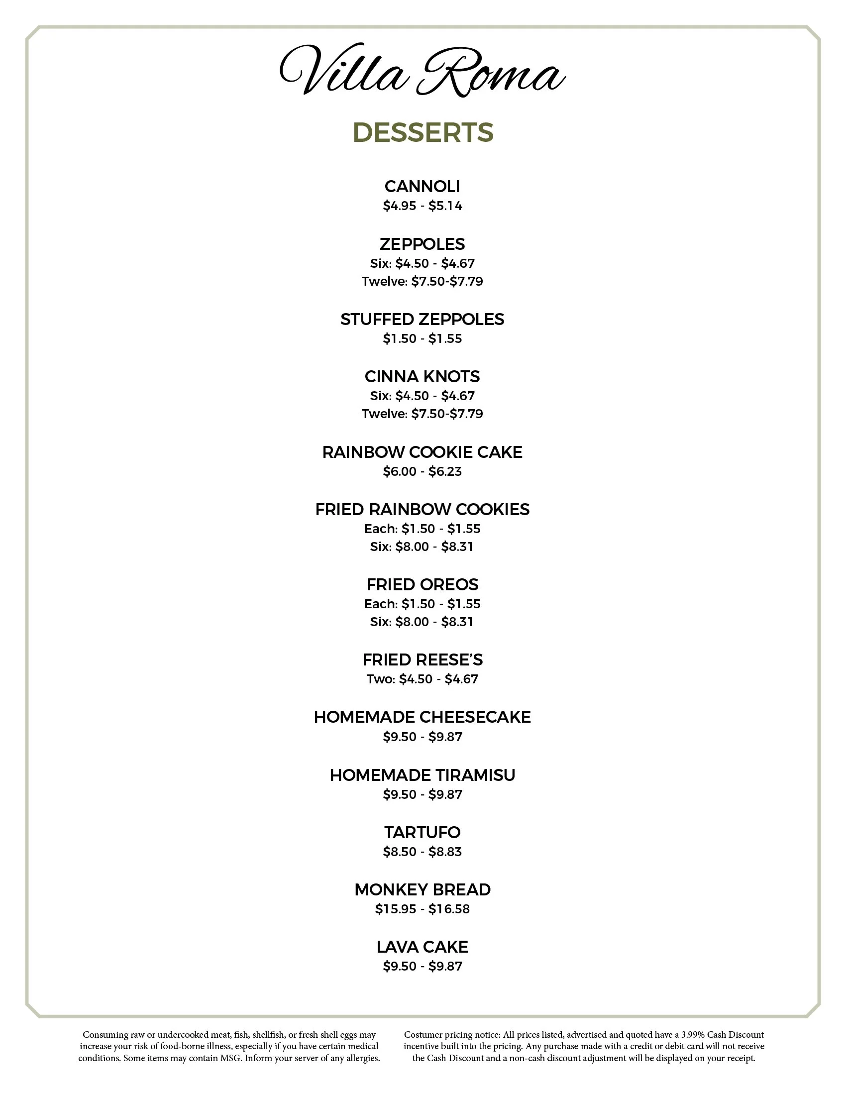 Dine In Menu PDF